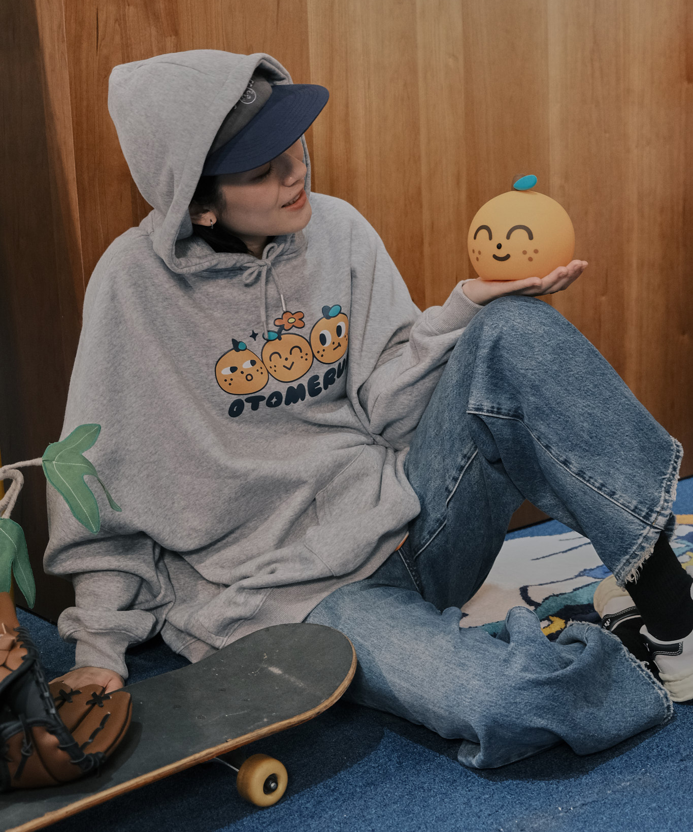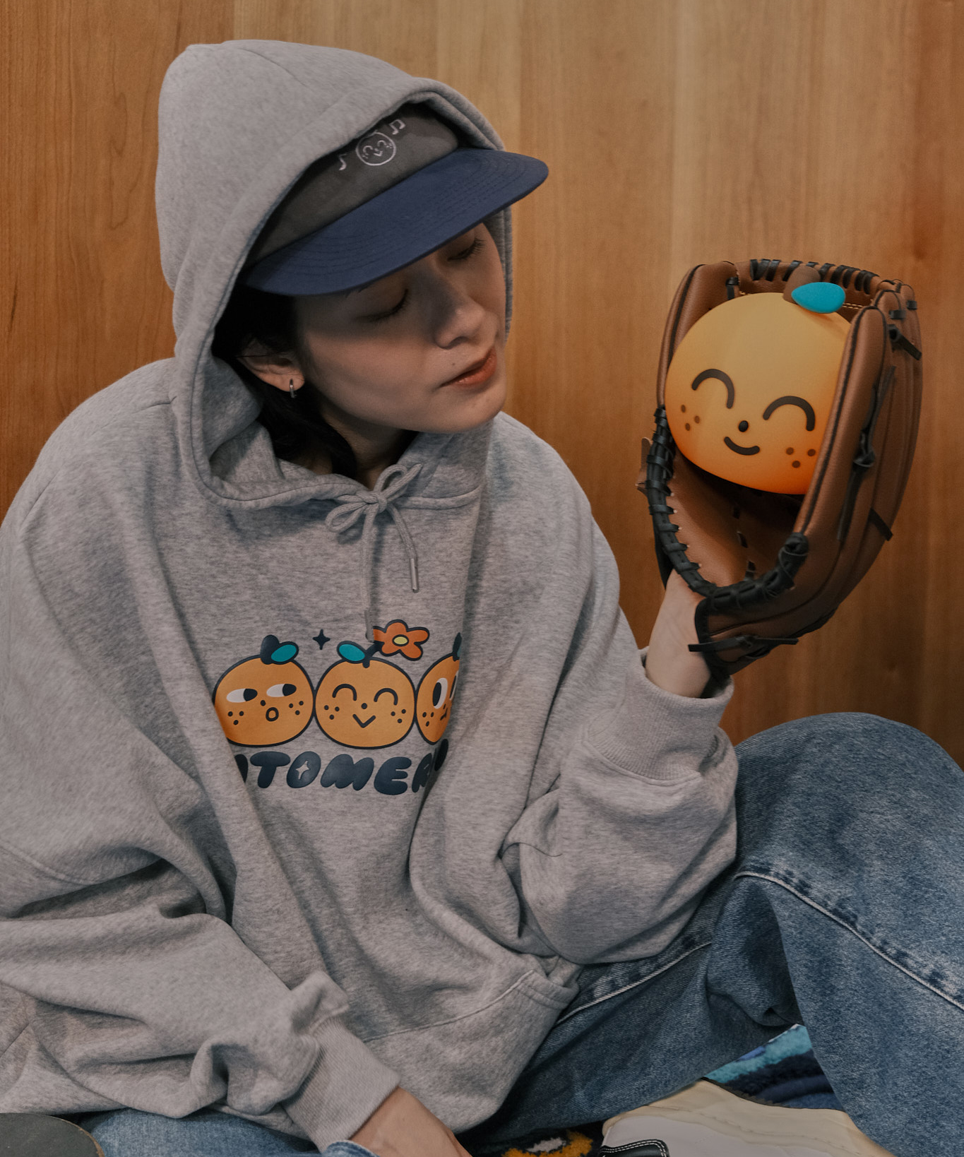 綻放的桔利 刷毛帽tee
